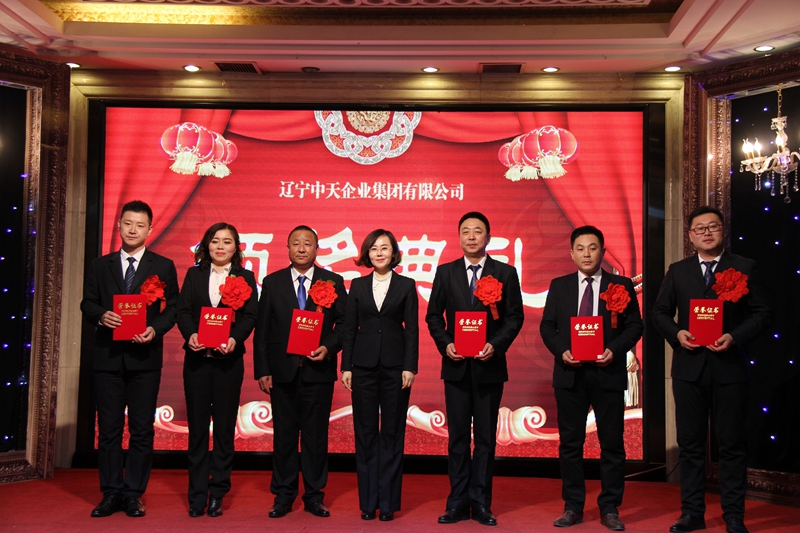 于寶權(quán)董事長分別與遼陽公司總經(jīng)理孫繼莊、天運(嘉晨)公司總經(jīng)理周春雷、天泰公司總經(jīng)理于洪濤、物業(yè)公司總經(jīng)理王化啟、萬豪酒店總經(jīng)理馮國簽訂2018目標管理責任狀。