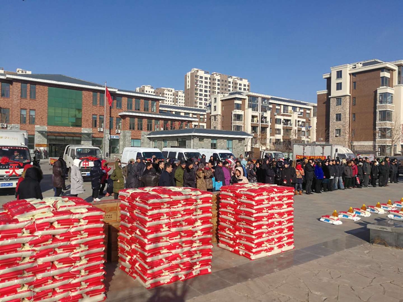 2018年1月23日,滿載大米、面粉和豆油的八輛大卡車,在集團(tuán)于寶權(quán)董事長(zhǎng)帶領(lǐng)下,直赴營(yíng)口市西市區(qū)得勝街道紅運(yùn)社區(qū)廣場(chǎng),為等候在這里的500戶貧困居民每戶發(fā)放一袋大米、一袋面粉和一桶豆油,表達(dá)中天人的愛心,這是中天集團(tuán)持續(xù)九年的善舉。