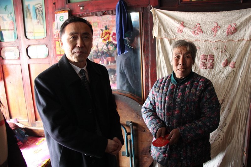 在閻書記指引下,慰問團又走進李大爺家。李大爺與老伴都七十多歲,一雙兒女均在外地打工,李大爺老伴去年患心臟病住院二個多月,花光了家里所有儲蓄,還欠下了很多外債,家庭生活十分困難。馬上就要過年了,但家無分文,一點年貨還沒有辦置。當李大爺老伴接過許總送上的1000元現(xiàn)金時,也流下了熱淚,感謝新社會,感謝中天企業(yè),這一份慰問金對于他們家來講,真是雪中送炭,解決了他們家過年的大問題。