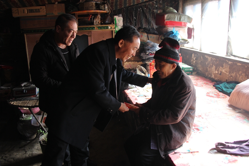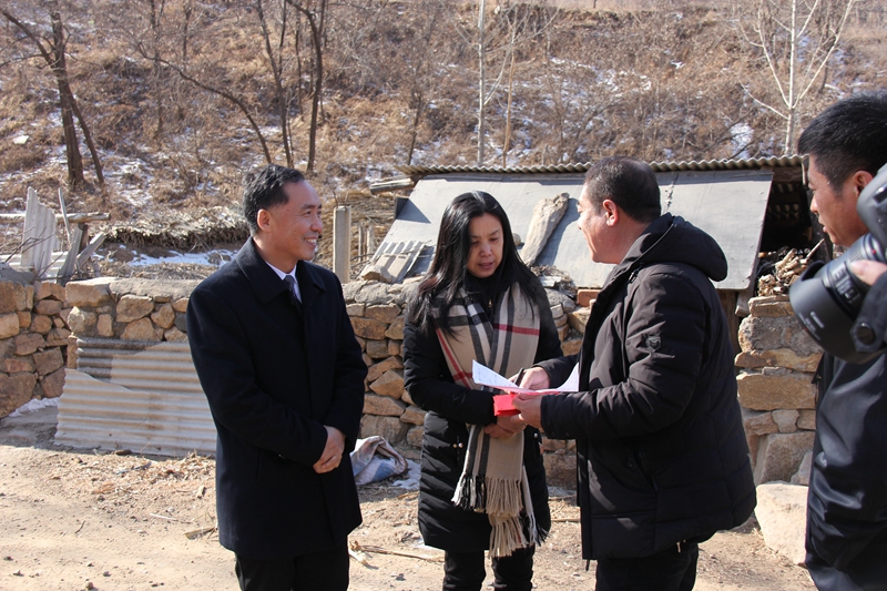 “中天集團鄉(xiāng)村慰問團”由集團行政人力資源總監(jiān)許文明任團長,集團總部項目發(fā)展部經(jīng)理馬科、集團總部綜合管理部副經(jīng)理田彧等人組成。清晨,他們帶著慰問金,冒著嚴寒,驅(qū)車百余里到達大石橋市黃土嶺鎮(zhèn)的虎皮峪村,村黨支部閻書記早早就等待在村口,對集團慰問團的到來熱情的歡迎,并致以真誠的感謝,感謝中天企業(yè)集團能夠走進鄉(xiāng)村,把愛心送給貧困戶,實實在在地為貧困家庭送禮,讓他們能夠度過一個幸福的春節(jié)。
