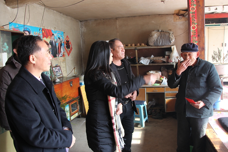 在閻書記的帶領(lǐng)下,慰問團驅(qū)車走進虎皮峪村的深山里,開始逐家走訪困難戶。首先來到貧困戶金大爺?shù)募?,金大爺老伴患腦血栓臥床十余年,金大爺需要常年護理老伴,家庭沒有經(jīng)濟收入,生活十分困難。金大爺接到慰問團送來的1000元現(xiàn)金,當場流下了熱淚,感謝中天集團能夠惦記他們這樣的貧困戶,1000元現(xiàn)金可以購買全部的年貨,這個春節(jié)一定會幸福開心。