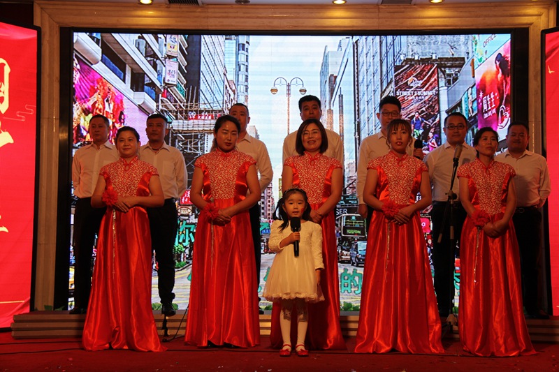 農(nóng)貿(mào)公司代表隊表演的《七子之歌》,特別是孫晶總經(jīng)理三周歲小女兒的領(lǐng)唱,不但感染了在場的每一個員工,也體現(xiàn)了中天人家屬的愛國熱情。他們用《咱們工人有力量》曲調(diào),用中天發(fā)展的歷程融匯到歌聲里,反映了中天人愛祖國,愛中天的情懷,獲得了高分。