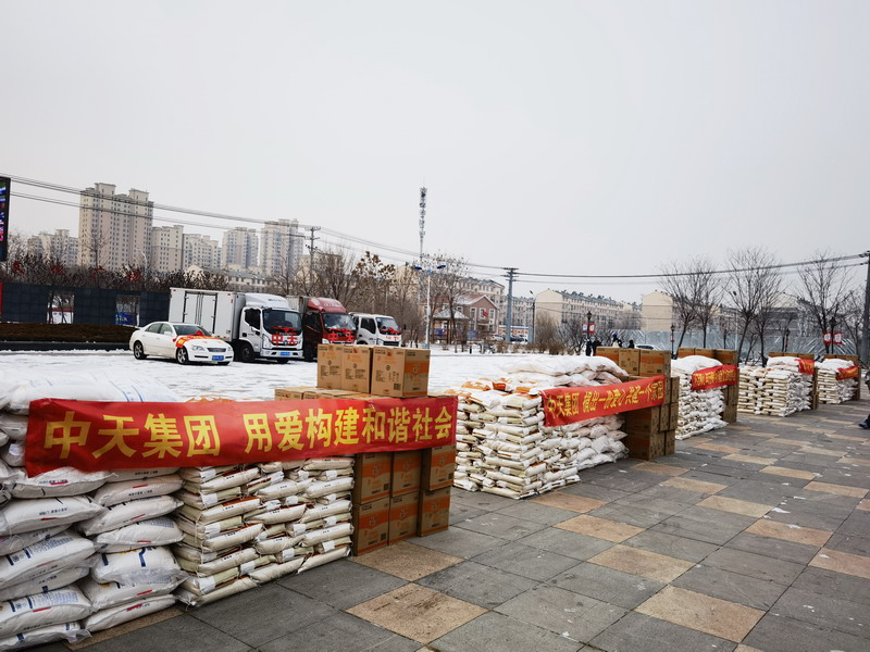 歲末寒冬迎春節(jié),真情慰問(wèn)暖人心。2021年2月3日,在集團(tuán)于寶權(quán)董事長(zhǎng)的帶領(lǐng)下,滿載大米、面粉和豆油的五輛大卡車(chē),直赴營(yíng)口市西市區(qū)得勝街道紅運(yùn)社區(qū)廣場(chǎng),在這里即將舉行中天集團(tuán)扶貧物質(zhì)發(fā)放儀式,在新年來(lái)臨之際,為營(yíng)口市區(qū)西部的600戶(hù)貧困居民每戶(hù)發(fā)放一袋大米、一袋面粉和一桶豆油。這已經(jīng)是中天集團(tuán)自2010年起連續(xù)十二年舉辦該活動(dòng),為的就是讓這些貧困家庭能夠過(guò)上一個(gè)快樂(lè)祥和的新年。