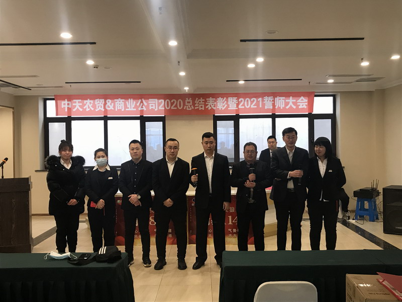 1月28日下午,農(nóng)貿(mào)和商業(yè)公司召開2020年度總結(jié)表彰大會。商業(yè)公司副總經(jīng)理田彧做商業(yè)公司2020年度工作匯報。表彰2020年度優(yōu)秀員工農(nóng)貿(mào)公司和商業(yè)公司團(tuán)隊(duì)上臺,對新年度指標(biāo)任務(wù)開展誓師。孫晶總經(jīng)理分別與各位經(jīng)理簽署責(zé)任狀,并發(fā)表講話。通過此次會議,使農(nóng)貿(mào)公司和商業(yè)公司的員工進(jìn)一步明確了2021年度工作目標(biāo),提升了員工凝聚力,為更好的完成年度任務(wù)奠定了基礎(chǔ)。