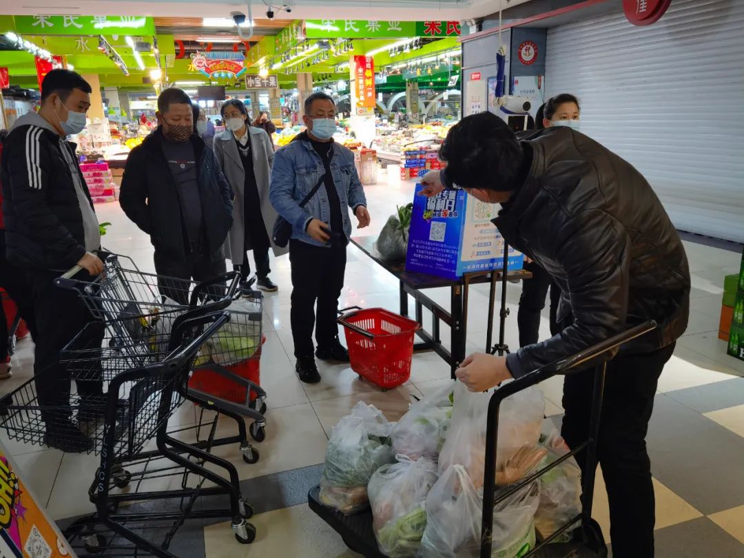 中天桃花源農(nóng)貿(mào)市場面對疫情來臨,一面安排商戶保障食品充足,一面組織人員做好進(jìn)店顧客的防疫檢測,保證市場內(nèi)的安全運營。