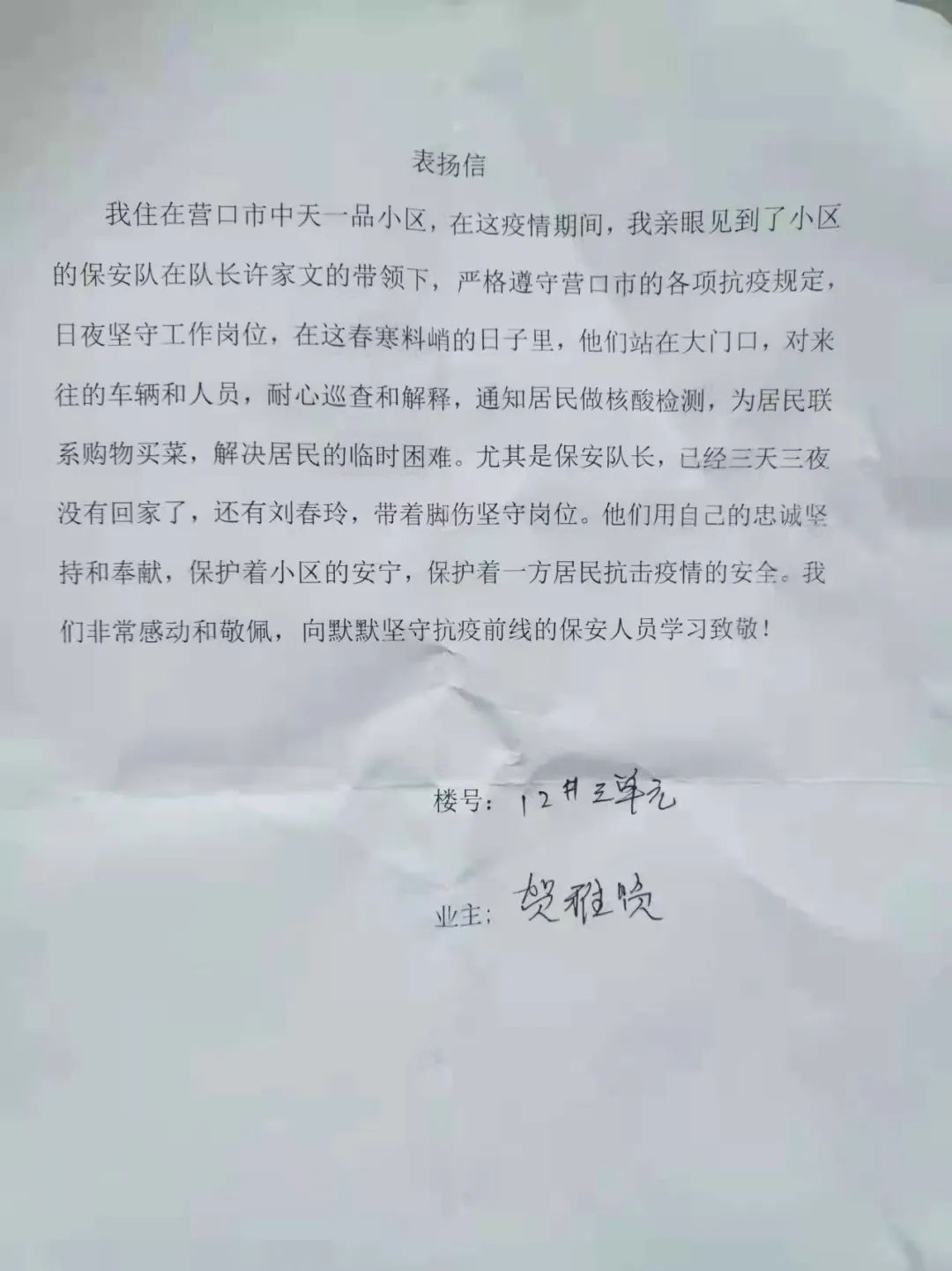 這三天里,物業(yè)人也經(jīng)受了太多的委屈和抱怨。因為疫情封閉,禁止人員外出,部分業(yè)主不理解,把不滿和怨氣都撒在保安的身上,有的爭吵謾罵,有的甚至還動手。他們每天都要不停地解釋,承受著各種指責和辱罵,但他們不退縮,以良好的品質,堅守在自己的崗位上,盡心盡力做好工作。