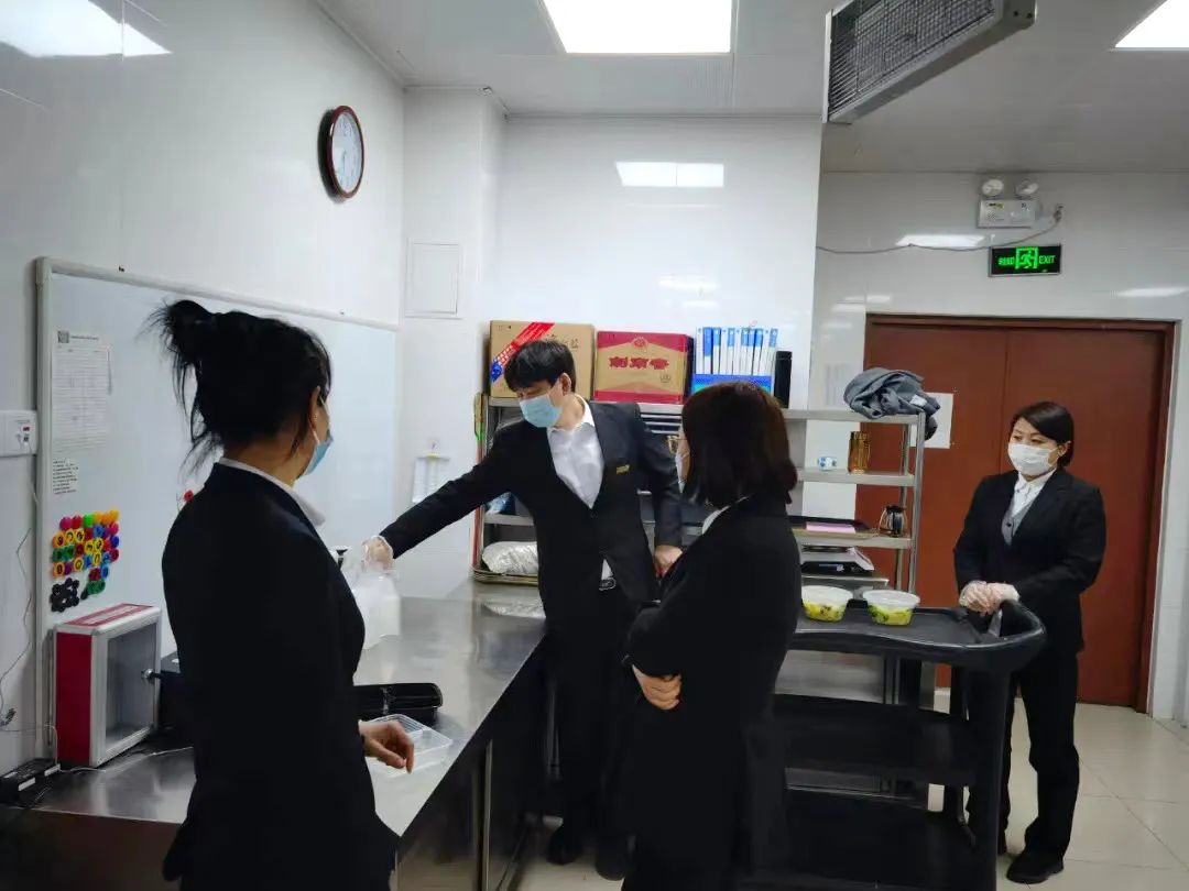 面對工作量激增、人員緊缺的突發(fā)情況,李敏總經(jīng)理身先士卒,帶領全體員工迅速投身防控一線,帶頭全面開展各項工作,在援營醫(yī)護隊伍下榻酒店之前,為他們做好食宿、消毒防疫等各方面的安排,提前完成90間客房的整理及消殺工作,確保住宿環(huán)境衛(wèi)生安全;對空調(diào)系統(tǒng)和熱水系統(tǒng)進行全面檢查并做好預熱工作,做好醫(yī)療隊用房保障;酒店成立24小時專職小分隊,照顧醫(yī)護人員日常生活,時刻與醫(yī)護人員們保持溝通,保障一線醫(yī)護人員需求。