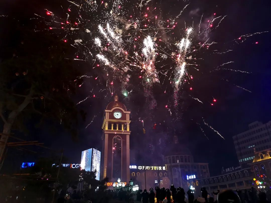 14種不同的璀璨煙花點亮營口夜空,美不勝收。煙花像一個技藝高超的魔術(shù)師將千變?nèi)f化的焰火在夜空中一一鋪陳開,那一朵朵鵝黃、銀白、嫩綠、淡紫、淺藍、粉紅的花朵在天空閃爍,火樹銀花,猶如萬家燈火,在一片輝煌盛景里,新一年的篇章徐徐開啟。