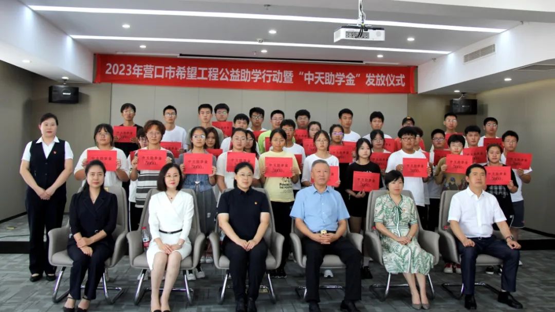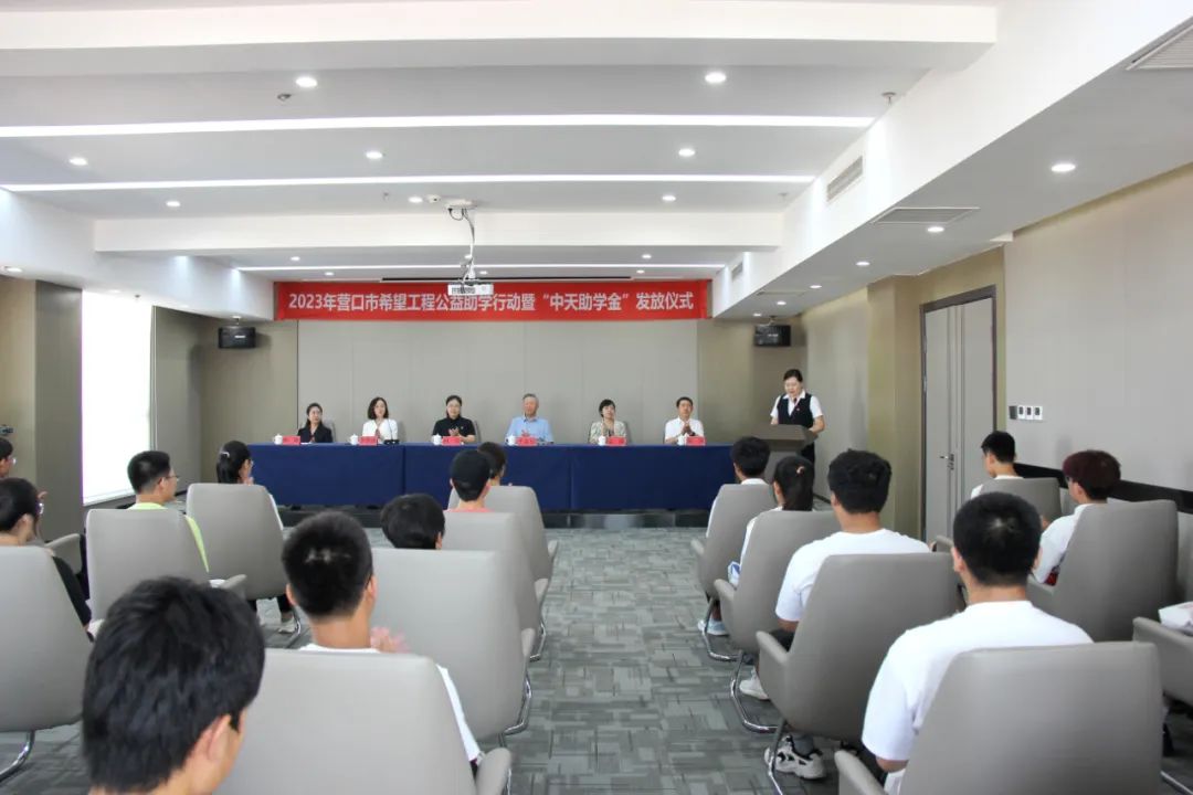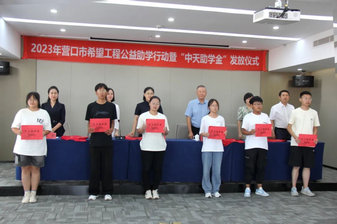 8月18日下午,2023年營口市希望工程公益助學(xué)活動暨“中天助學(xué)金”發(fā)放儀式在中天集團(tuán)總部會議室舉行。營口市團(tuán)市委書記白潔,中天企業(yè)集團(tuán)董事長于寶權(quán)、總裁于洪波,營口市團(tuán)市委副書記梁嫚,營口市委教育工作委員會專職委員邰穎,營口市慈善總會常務(wù)副會長黃渤以及獲得資助的34名學(xué)生,出席了本次發(fā)放儀式。來自遼寧省實驗營口分校、遼寧省實驗遼東灣分校、營口市高級中學(xué)、營口市第三高級中學(xué)、大石橋市高級中學(xué)、大石橋市第二高級中學(xué)、蓋州第一高級中學(xué)、熊岳高級中學(xué)、營口開發(fā)區(qū)高級中學(xué)、營口開發(fā)區(qū)第二高級中學(xué)等十所學(xué)校的34名貧困學(xué)生,每人獲得5000元資助。