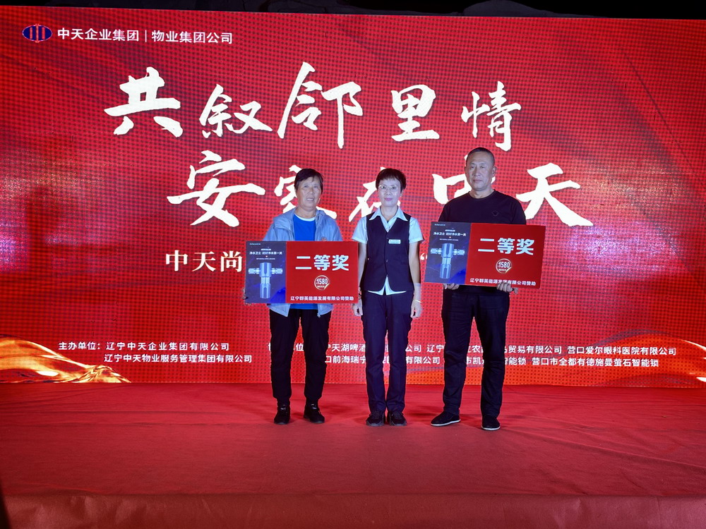 為了進(jìn)一步增強(qiáng)鄰居節(jié)的互動(dòng)性,活動(dòng)期間各小區(qū)還設(shè)置了抽獎(jiǎng)和互動(dòng)游戲環(huán)節(jié),不同區(qū)域設(shè)置的獎(jiǎng)品包含了50寸電視機(jī)、凈水器、養(yǎng)生壺、綿羊被、瑜伽卡、云南雙人游、演唱會(huì)門票等等,真正做到了回饋業(yè)主。營(yíng)口區(qū)域還延續(xù)此前鄰居節(jié)的傳統(tǒng),各小區(qū)共評(píng)選出了“和諧家庭”11戶,“最美中天人”11名,獲評(píng)的11戶“和諧家庭”,都是家庭幸福,熱心園區(qū)公益,積極為打造和諧園區(qū)做出突出貢獻(xiàn),充滿正能量的業(yè)主;獲評(píng)的11位“最美中天人”則是小區(qū)里尊老愛幼、勤儉持家、團(tuán)結(jié)鄰里,熱心助人,幫助業(yè)主排憂解難的好榜樣。各小區(qū)物業(yè)經(jīng)理為獲獎(jiǎng)?wù)哳C發(fā)了證書和獎(jiǎng)品,希望通過典型的樹立,激勵(lì)小區(qū)的業(yè)主積極參與到小區(qū)的建設(shè)中來(lái),與物業(yè)心手相牽,共同打造和諧文明的物業(yè)小區(qū)。