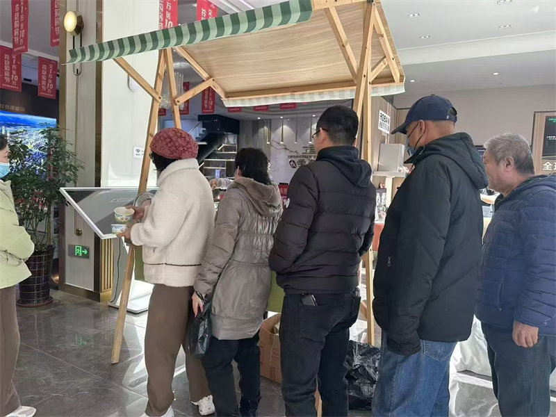 活動(dòng)現(xiàn)場(chǎng),一張長(zhǎng)桌子,桌上擺放著各種餃子,售樓處的員工正在緊鑼密鼓的準(zhǔn)備當(dāng)中,業(yè)主和客戶已經(jīng)排起來(lái)長(zhǎng)長(zhǎng)的隊(duì)伍,場(chǎng)面熱鬧非凡。