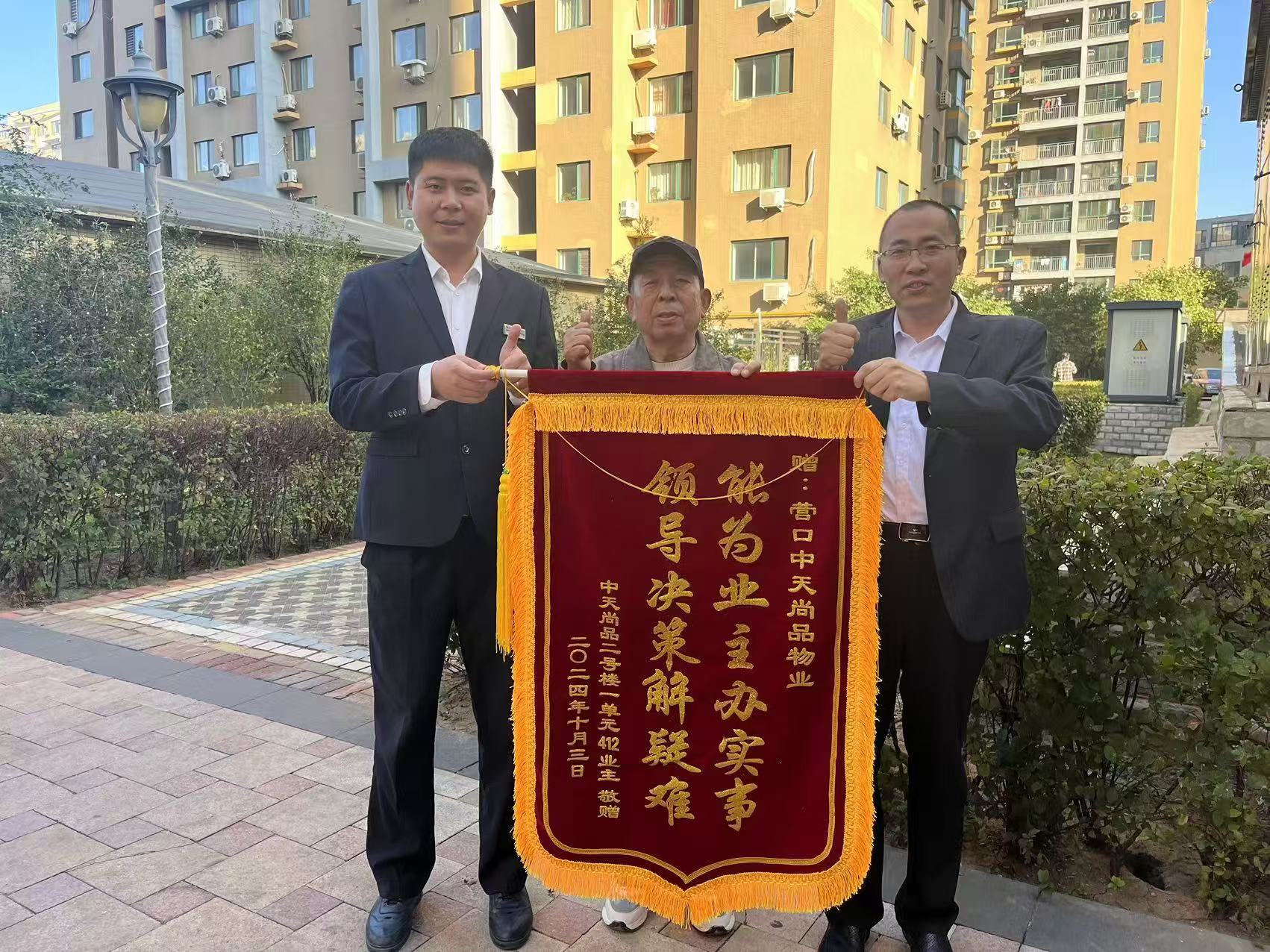 好物業(yè),不僅盡力,而且盡心,對(duì)業(yè)主盡心、對(duì)工作盡心,業(yè)主才能更貼心、放心、省心、傾心。近日,中天尚品物業(yè)迎來了2號(hào)樓1單元404的業(yè)主,業(yè)主手握一面印有“能為業(yè)主辦實(shí)事,領(lǐng)導(dǎo)決策解疑難”鎏金大字錦旗,贈(zèng)送中天尚品小區(qū)物業(yè)部,一聲感謝暖人心懷,一面錦旗彰顯擔(dān)當(dāng)。中天物業(yè)人用真情和行動(dòng),為呈現(xiàn)有溫度的鄰里生活全力以赴。