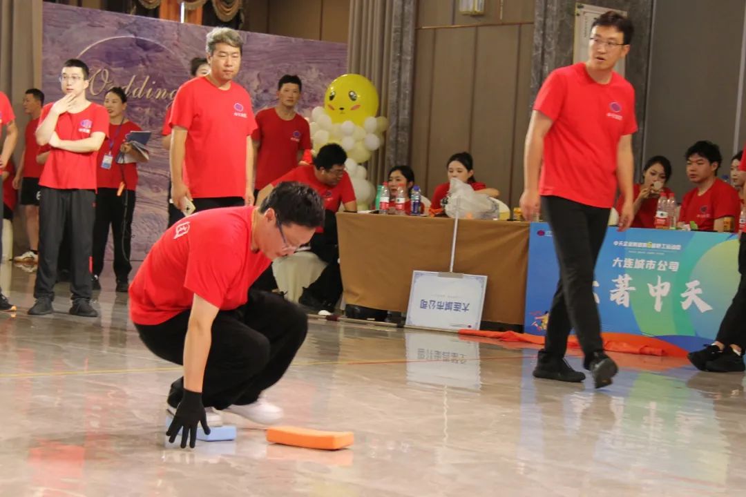 “瘋狂毛毛蟲”每隊(duì)6人,選手們坐在毛毛蟲上,攜毛毛蟲出發(fā)進(jìn)行折返跑,用時(shí)最少為勝。這項(xiàng)運(yùn)動(dòng),主要考驗(yàn)了隊(duì)員們的配合與協(xié)調(diào)性,只有步調(diào)一致才能取得佳績(jī)。遼陽(yáng)城市公司以速度和默契取勝,獲得此項(xiàng)目冠軍,大連城市公司、營(yíng)口城市公司獲得二、三名。