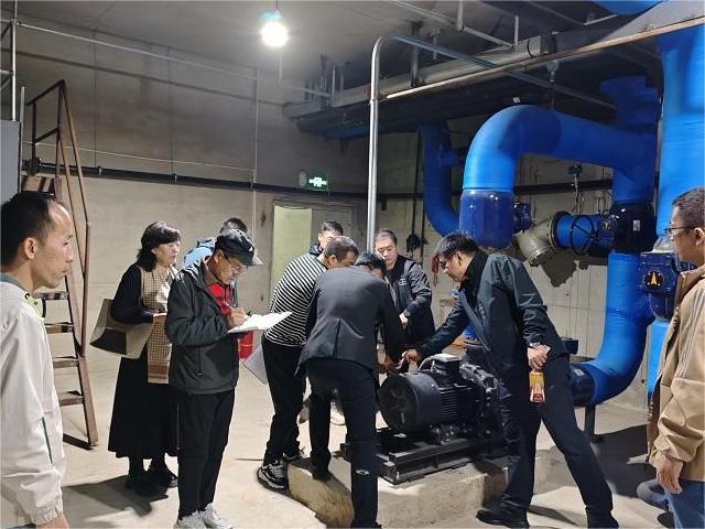 在設備房,專家組檢查了中央空調系統(tǒng)、電梯及公共區(qū)域照明等核心設施,確認設備運行穩(wěn)定,基本符合國家高效節(jié)能標準。水泵房內生活泵、消防泵及排污泵均正常運轉,專家建議優(yōu)化泵組運行模式以進一步降低能耗。針對供暖泵房,專家組肯定了其節(jié)能設計,并建議依據實際需求動態(tài)調整運行參數,提升能源利用效率。在配電房,電氣設備配置規(guī)范、運行平穩(wěn),專家強調應加強定期維護,確保長期安全高效運行。