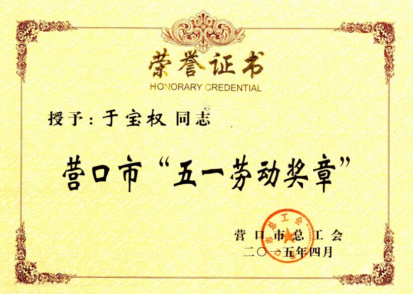 在五一國(guó)際勞動(dòng)節(jié)來(lái)臨之際, 4月28日上午,市總工會(huì)召開(kāi)的2015年?duì)I口市“五一勞動(dòng)獎(jiǎng)狀”和“五一勞動(dòng)獎(jiǎng)?wù)隆北碚么髸?huì)上,于寶權(quán)董事長(zhǎng)榮獲“市五一勞動(dòng)獎(jiǎng)?wù)隆笔鈽s;4月29日上午,在站前區(qū)政府召開(kāi)的“站前區(qū)勞動(dòng)模范先進(jìn)集體表彰會(huì)”上,于洪濤總經(jīng)理榮獲“站前區(qū)勞動(dòng)模范”殊榮。所獲得的殊榮是市政府、區(qū)政府對(duì)兩位領(lǐng)導(dǎo)者多年來(lái)兢兢業(yè)業(yè)工作、不斷奉獻(xiàn)社會(huì)的稱贊;也是對(duì)我們中天集團(tuán)十四載風(fēng)雨兼程,穩(wěn)健發(fā)展的充分肯定。
