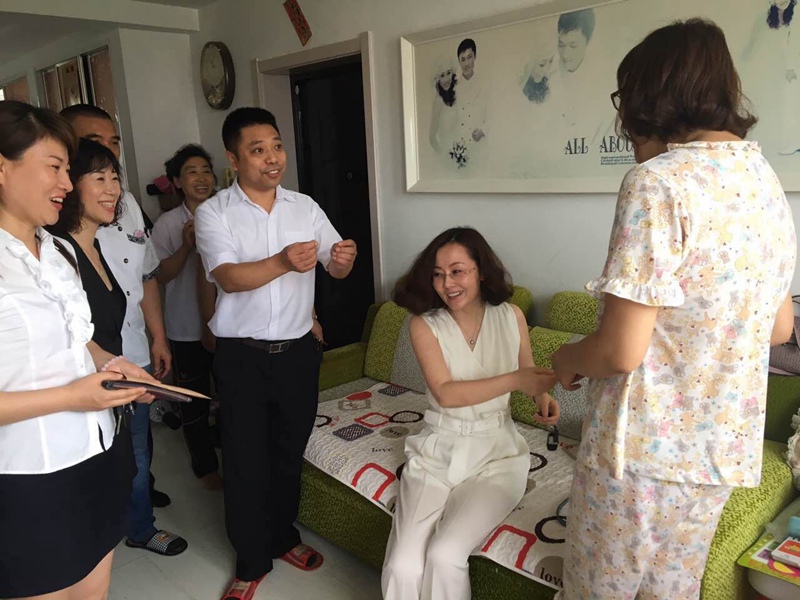 7月10日集團(tuán)副總經(jīng)理于洪波、萬(wàn)豪酒店總經(jīng)理馮國(guó)帶領(lǐng)酒店中層管理人員及員工代表一行10余人,帶著萬(wàn)余元愛(ài)心捐款和酒店全體員工的真誠(chéng)問(wèn)候,探望病中的常偉。常偉2007年入職萬(wàn)豪酒店,是酒店的老員工了,參加工作10余年來(lái)從未因身體原因請(qǐng)假休息過(guò)。在5月初的一次體檢時(shí),經(jīng)體檢中心檢查出患有“甲狀腺小乳頭狀癌”。隨后,又到中國(guó)醫(yī)科大學(xué)附屬第一醫(yī)院復(fù)查,確認(rèn)病情后,需要馬上準(zhǔn)備手術(shù)。消息傳出,集團(tuán)領(lǐng)導(dǎo)及酒店領(lǐng)導(dǎo)與常偉的家人一樣震驚與焦急。經(jīng)過(guò)家人的四處周旋,于6月下旬進(jìn)行了手術(shù)治療。欣慰的是手術(shù)做的很成功,出院當(dāng)天,酒店馮總致電了解病情并問(wèn)候。待病者病情稍有恢復(fù)能講話時(shí),集團(tuán)洪波總和酒店馮總在百忙之中一同看望了常偉,團(tuán)隊(duì)的關(guān)心與祝福,在這驕陽(yáng)似火的伏天里猶如一縷清風(fēng)沁人心脾,讓人感動(dòng)。我們真誠(chéng)的期待著常偉早日康復(fù),再回到酒店這個(gè)大家庭與我們并肩戰(zhàn)斗!